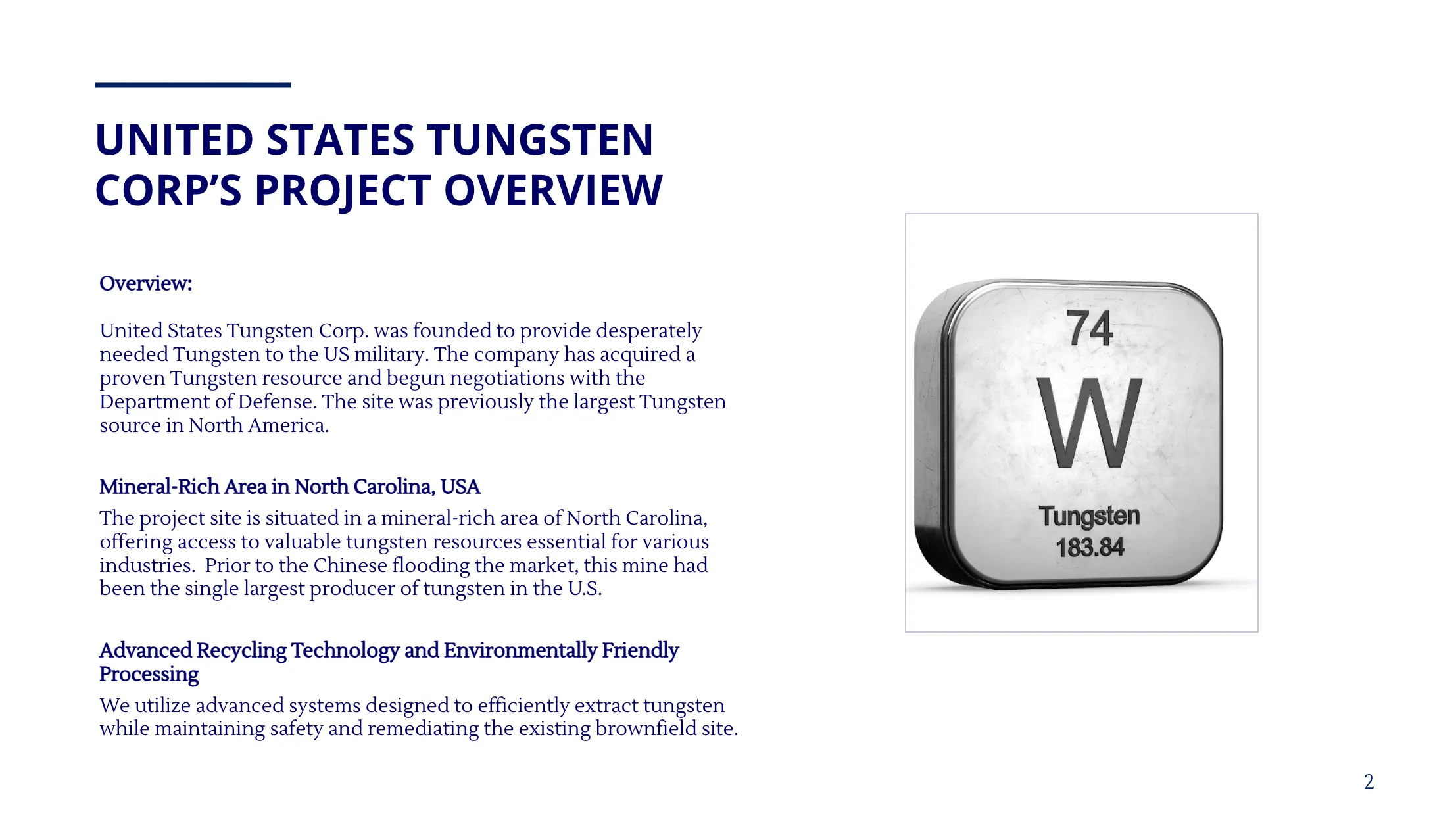United States Tungsten is already advancing a project aligned with U.S. national security priorities. With key approvals secured and federal engagement underway, we’re taking the necessary steps to reestablish domestic tungsten production.