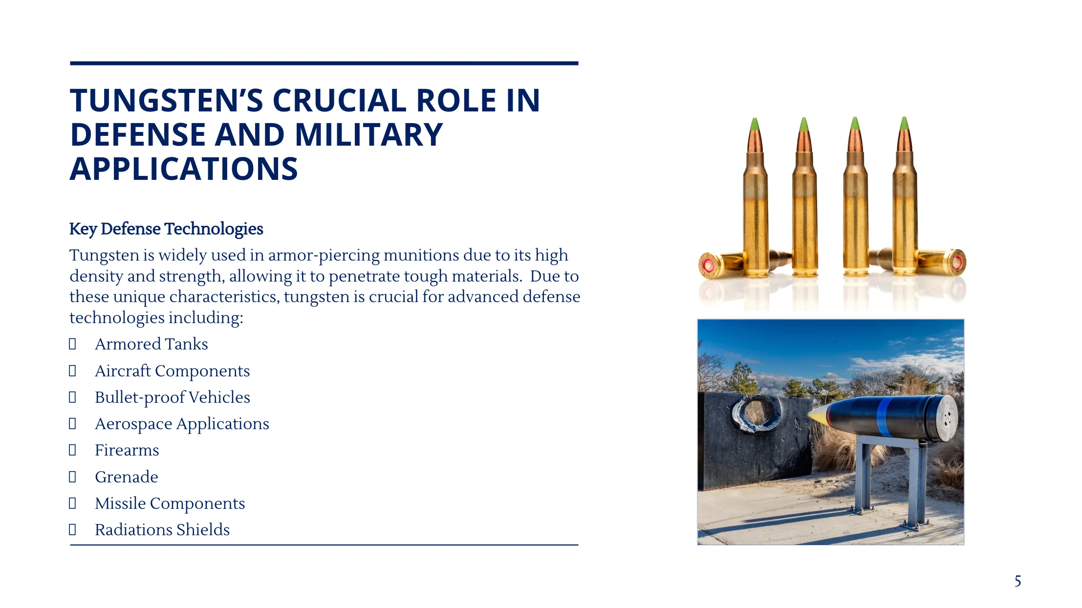 “Tungsten is not just another industrial metal. It is one of the most indispensable elements for national defense.“ 3