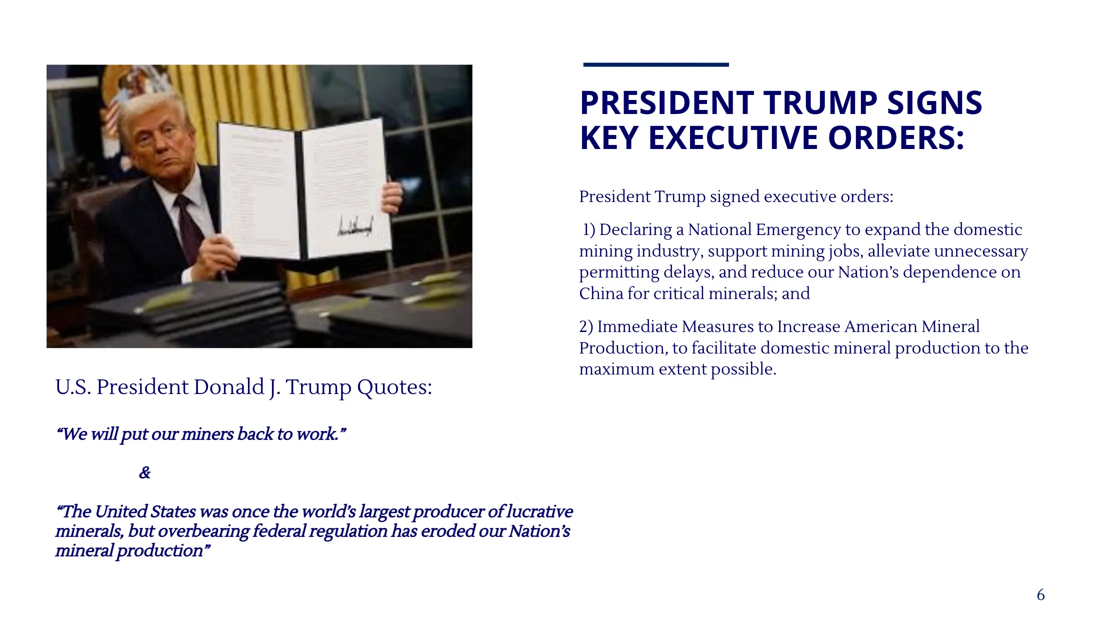 With decades of experience and key relationships across mining, critical minerals, energy, finance, and federal regulatory environments, our team is strategically assembled to maximize this opportunity.